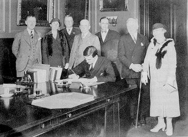 As Governor of New Hampshire, John G. Winant signed legislation in the Executive Chambers, The State House, Concord, New Hampshire.