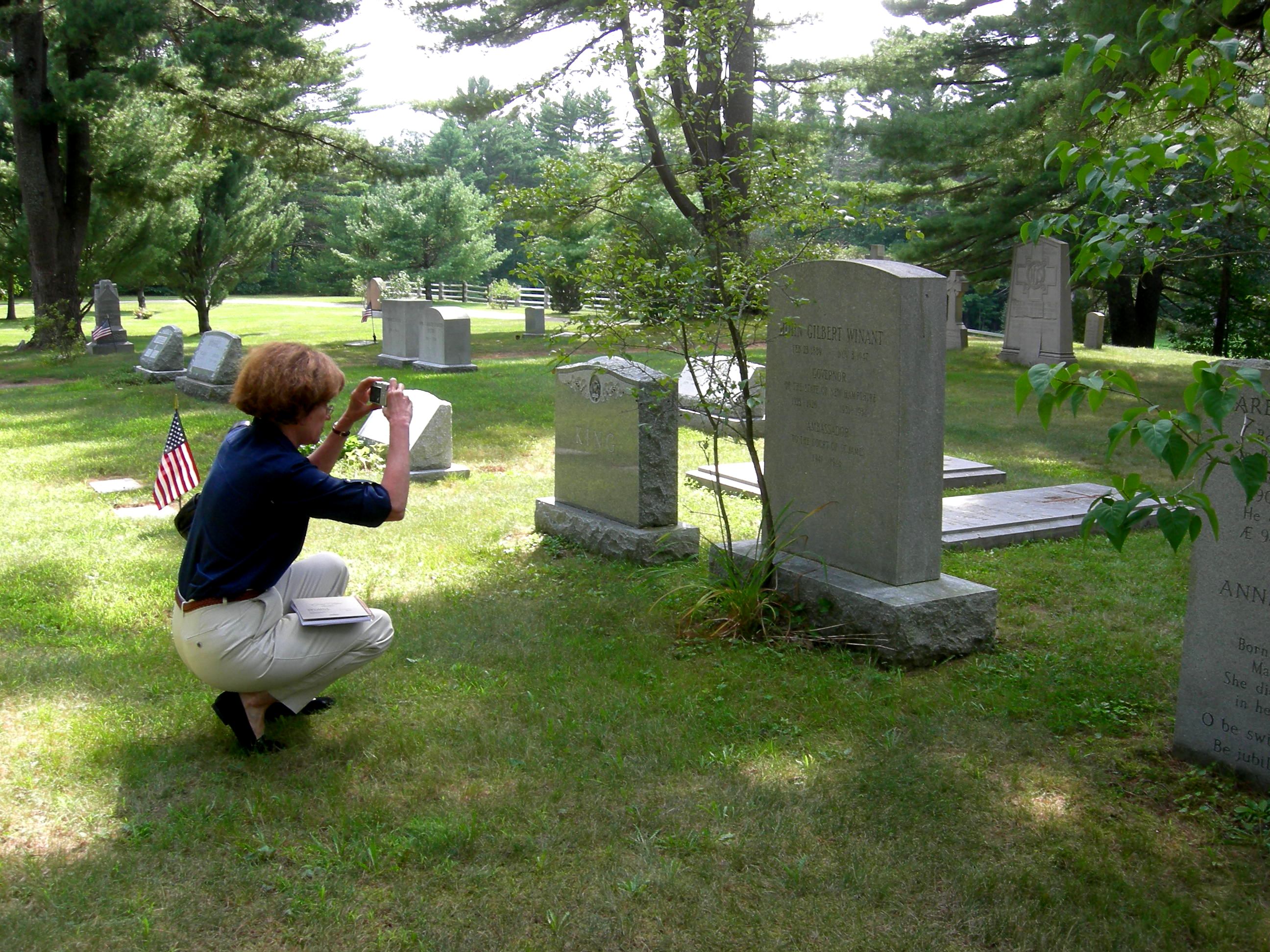 Author Lynne Olson photographs Winant's grave, St. Paul's School Cemetery, Concord, N.H., August 25, 2008 -- Dean Dexter photo