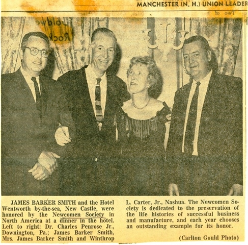 The James Barker Smiths, longtime owners of the Wentworth-By-the-Sea, Manchester NH Union Leader, October 8, 1963