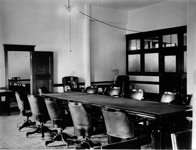 Main conference room, Portsmouth Naval Shipyard. The conference table was once at Rensselaer Polytechnic Institute (RPI), Troy, N.Y., now it is in Japan as an icon to a great moment in history.